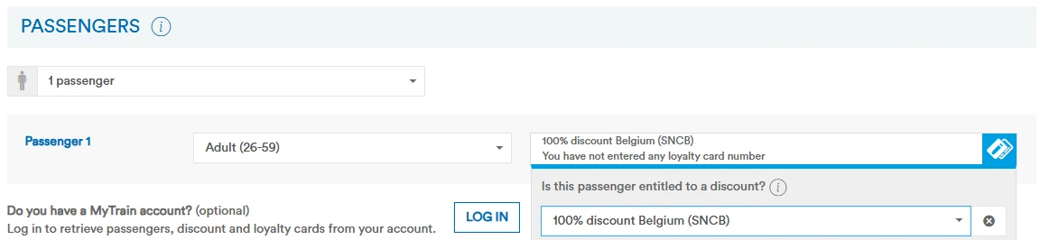 Children up to 5 years old travel free on SNCB trains. Children aged 6 to 11 are entitled to a 50% discount on the adult fare, and from 12 years old, they pay the adult fare. If they are FIP eligible, they also pay only half the normal price with FIP 50. 2